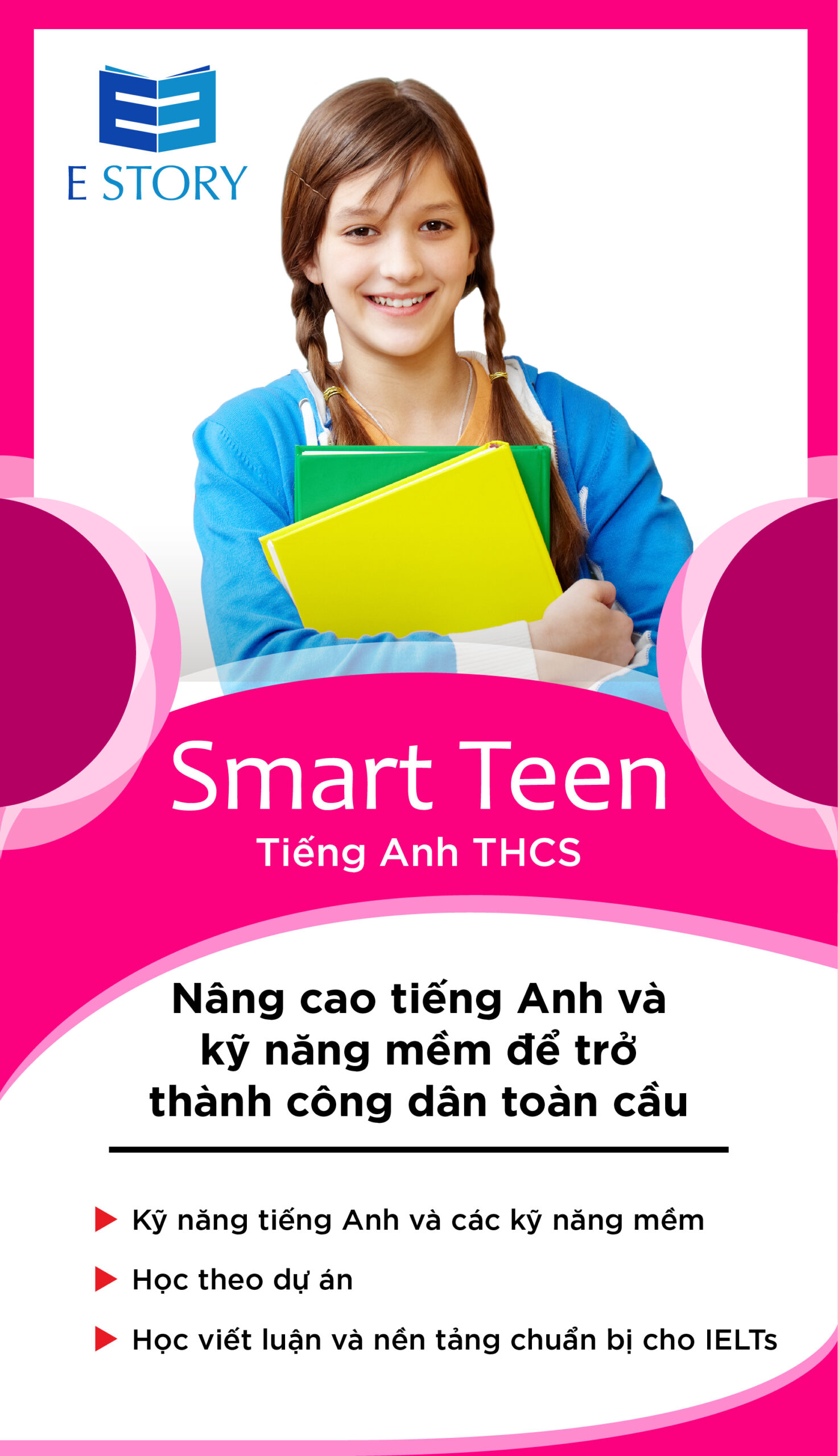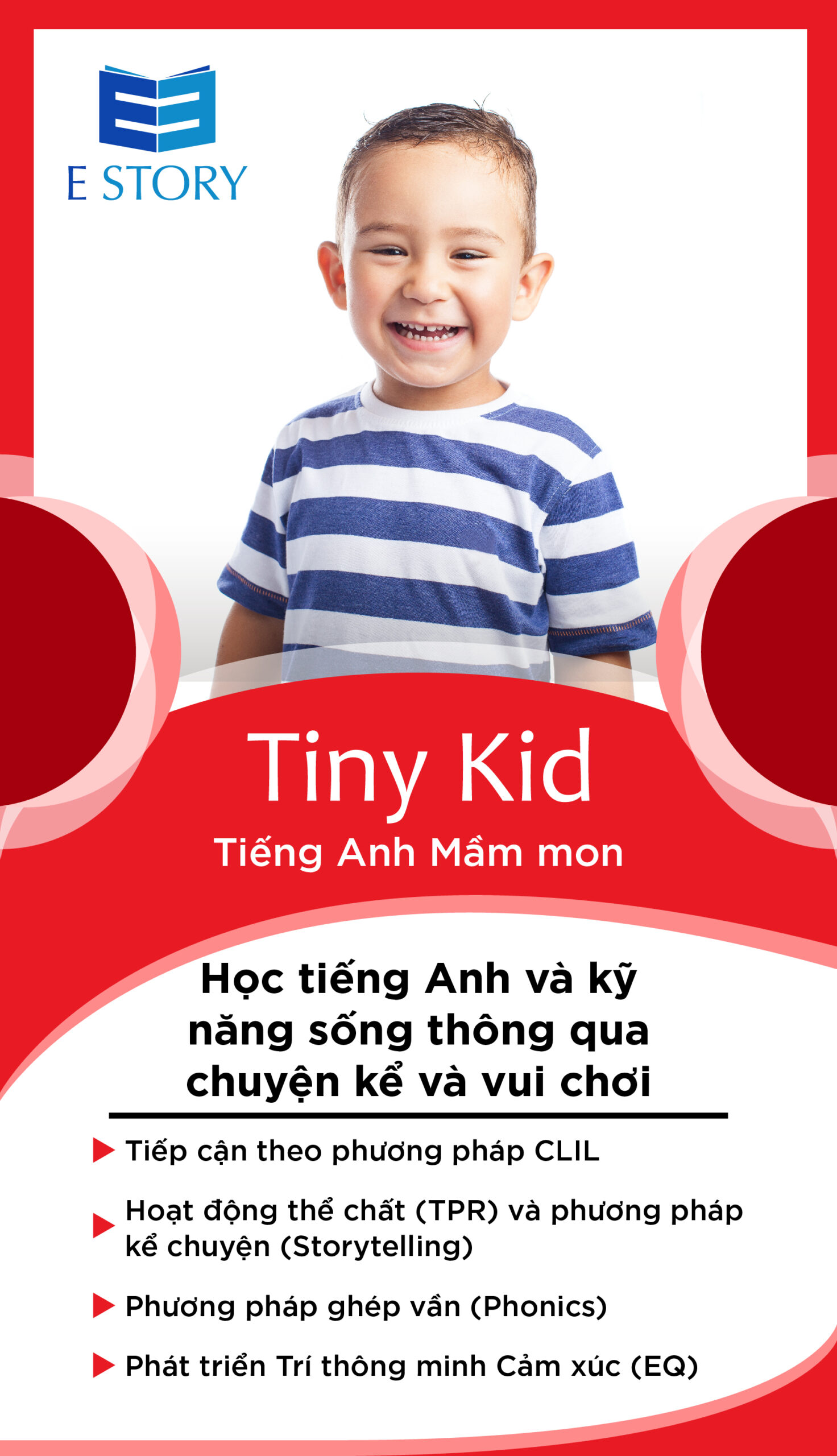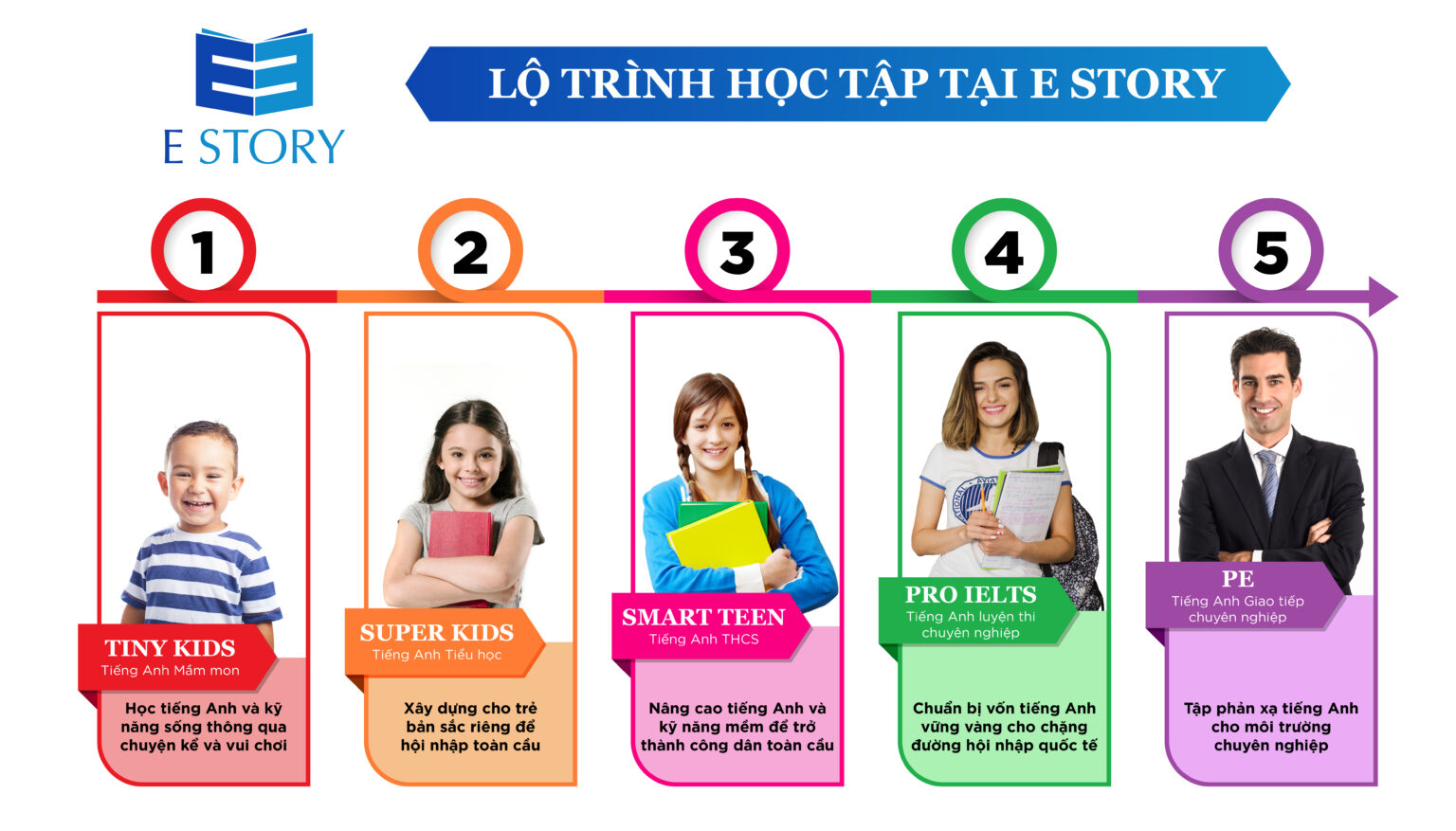 E-Story ra đời dưới sự phát triển của những thanh niên – thế hệ trẻ cùng với sự dẫn dắt của các thế hệ tiền bối – những người đã đóng góp ít nhiều cho nền giáo dục Việt Nam trong một khoảng thời gian dài. Bắt đầu thành lập năm 2019, E-Story hướng đến sự phát triển nhanh chóng để trở thành một trong những tổ chức hàng đầu không chỉ về đào tạo tiếng Anh cho thiếu nhi – thiếu niên mà còn đào tạo tiếng Anh thương mại, luyện thi và du học. Thầy Phạm Tiến Dũng – Giám đốc Đào tạo Anh ngữ E STORY, thầy có gần 30 năm kinh nghiệm làm giáo viên – quản lý trong mảng giáo dục, Giảng viên đại học Kinh tế – Luật – Đại học Quốc Gia TP. Hồ Chí Minh. Cô Vũ Thị Thu Hằng – Cố vấn của trường Anh ngữ E Story, người có hơn 12 năm làm giáo viên tiếng Anh của các trường Quốc tế, các Trung tâm Tiếng Anh nổi tiếng tại Thành phố Hồ Chí Minh, đồng thời cô cũng là R&D Manager (Chuyên viên Quản lý Nghiên cứu và Phát triển chương trình giáo dục): Cựu Quản lý hệ thống Phát Triển Tiềm Năng và Kỹ năng sống, phòng tham vấn Tâm lý học đường của Trường Quốc Tế Wellspring Sai Gon (đối tác chiến lược của Hiệp hội các trường Đại học Quốc tế của Mỹ – International University Alliance – và Đại học Flinders của Úc), Nhà nghiên cứu và phát triển chương trình tiếng Anh kể chuyện của KizM – Hàn Quốc. Ngoài ra, cô còn là Đồng tác giả cuốn sách “ Giờ Chơi Đến Rồi” – dành cho giáo viên, phụ huynh, dịch giả của bộ sách “ước mơ của bé”. Đặc biệt hơn, cô còn là nhà sáng lập CMC home – tổ hợp giáo dục sáng tạo dành cho giáo viên và phụ huynh. Những chuyến đi khảo sát ở thị trường giáo dục quốc tế, chúng tôi đã tiếp nhận và cam kết áp dụng phương pháp dạy hoàn toàn mới cho học sinh Việt Nam cùng với chương trình chất lượng cao theo sát tiêu chuẩn của Oxford University và Cambridges University sẽ đáp ứng và giúp học sinh đạt mục tiêu học tập của học viên. Bằng nhiệt huyết – tri thức và kinh nghiệm của các thầy cô E- Story, chúng tôi định hướng xây dựng hình ảnh học viên năng động và sáng tạo, để các em có thể hoàn toàn tự tin trong mọi lĩnh vực của cuộc sống. Chúng tôi sẽ không ngừng nỗ lực khắc phục mọi khó khăn để các học viên của chúng tôi có môi trường thoải mái và thư giãn để học tập.
